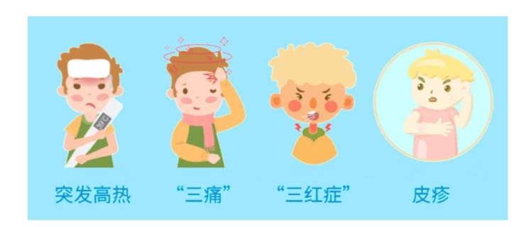 登革熱的典型癥狀可以歸納為:“高熱、三紅、三痛、皮疹”。