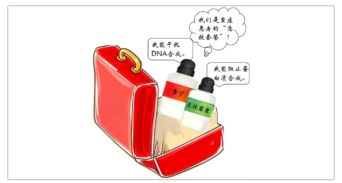 ?克林霉素:抑制肽鏈延長,干擾蛋白質合成。